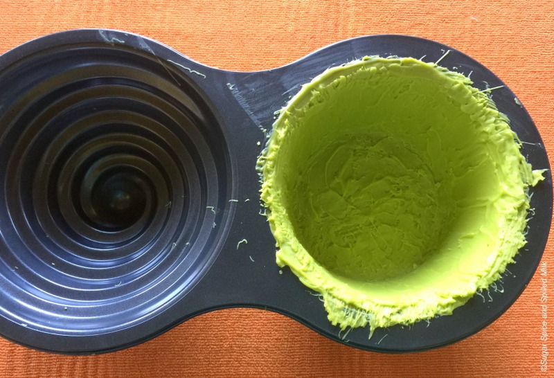 Melt about half a bag of candy melts according to package directions. Apply the melted candy to the inside of the giant cupcake pan in a thin coat. I used a silicone brush and a spatula to spread the candy. Place the pan in the refrigerator for about 10 minutes, or until the candy is firm. Apply a second coat of melted candy over the first, then return to the refrigerator for about 30 minutes. When the candy is firm and set, remove from refrigerator. Gently loosen the candy at the top and tap the bottom of the pan. Turn the pan upside down and the shell should slide right out.