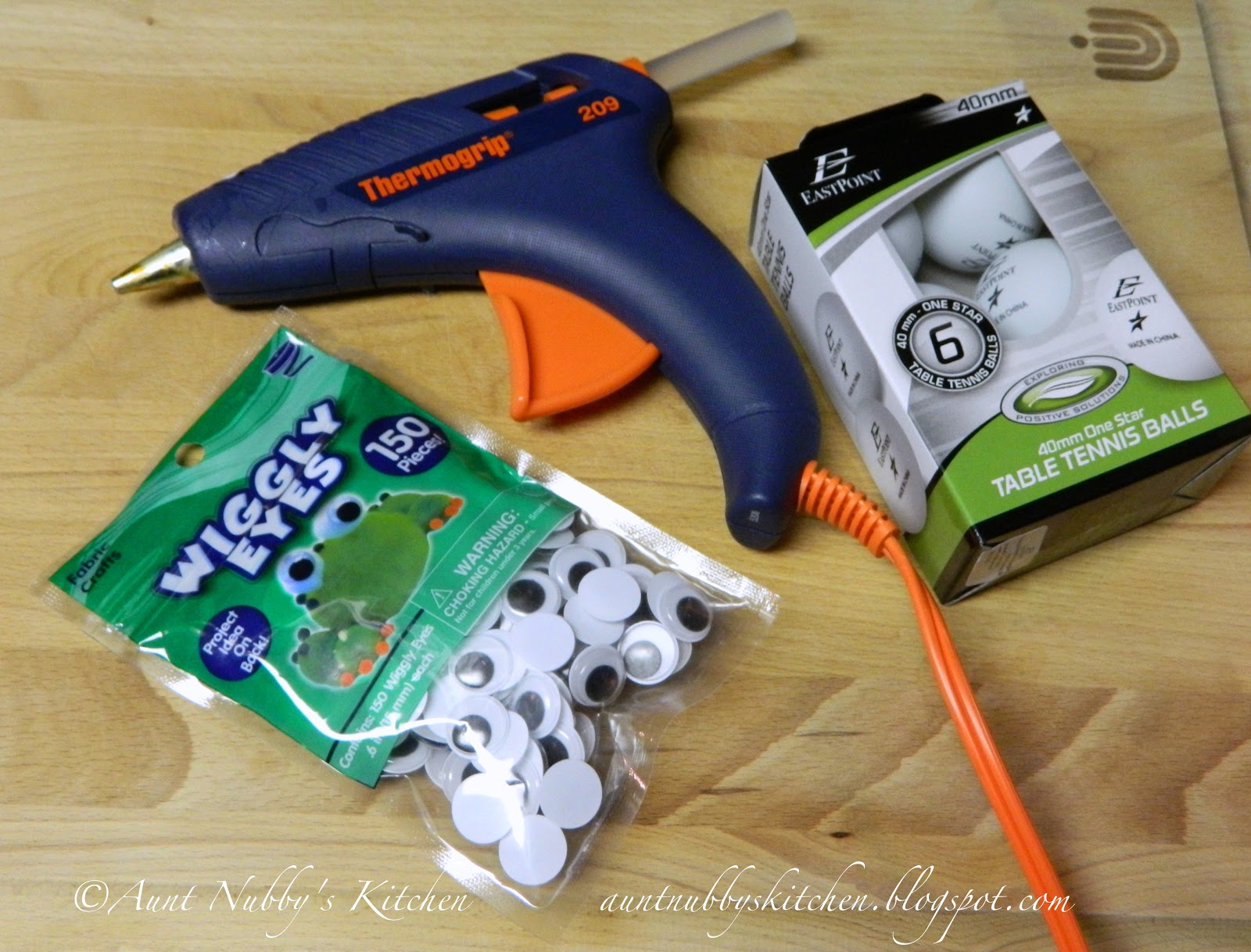 I also used some ping pong balls, wiggly eyes, and of course, my hot glue gun.