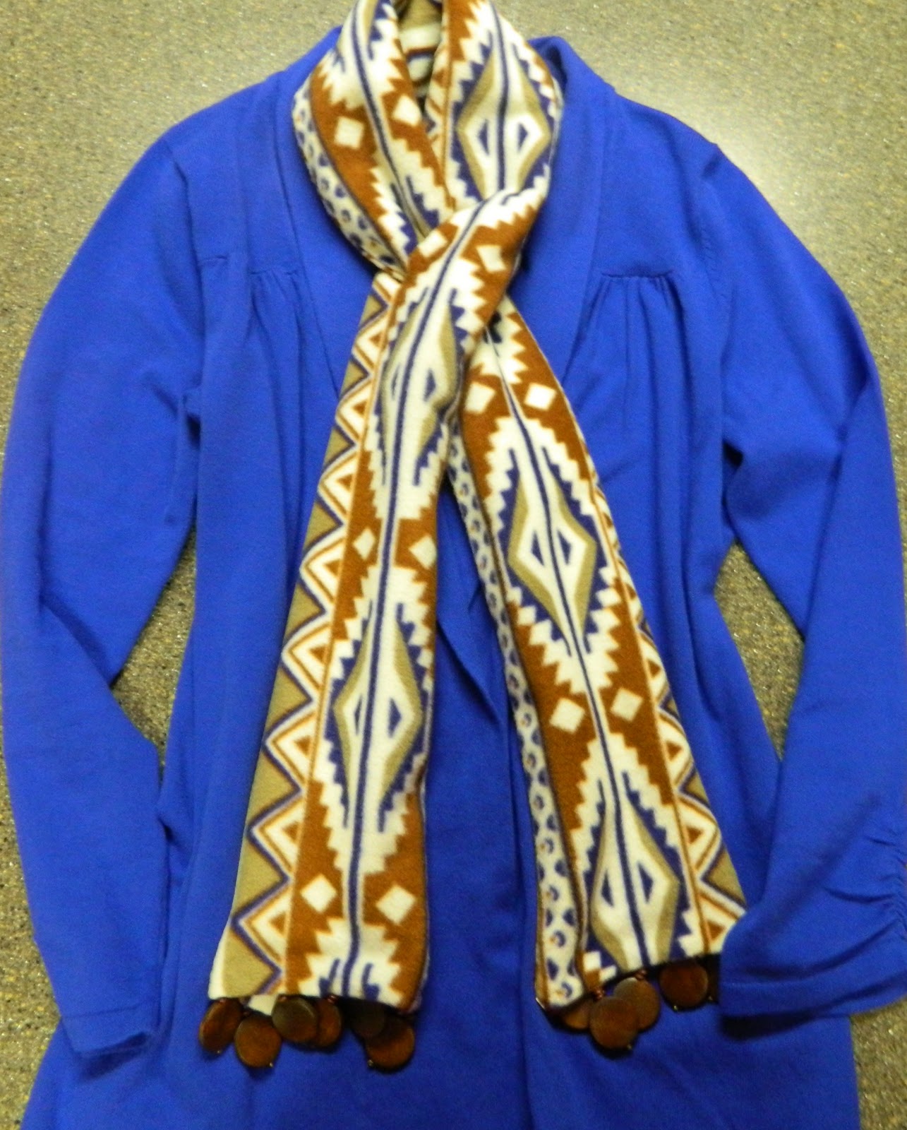 That fabric reminds me of a jacket I used to have with similar Indian print designs. I got compliments each time I wore it, as I'm sure you will with your scarf. Bet you stay really warm too.
