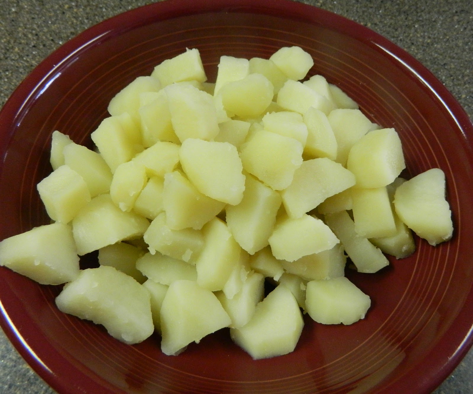 I figured this was made from leftover baked potatoes. Haha!!! I am sure you could bake them and cut them up after they were cold.