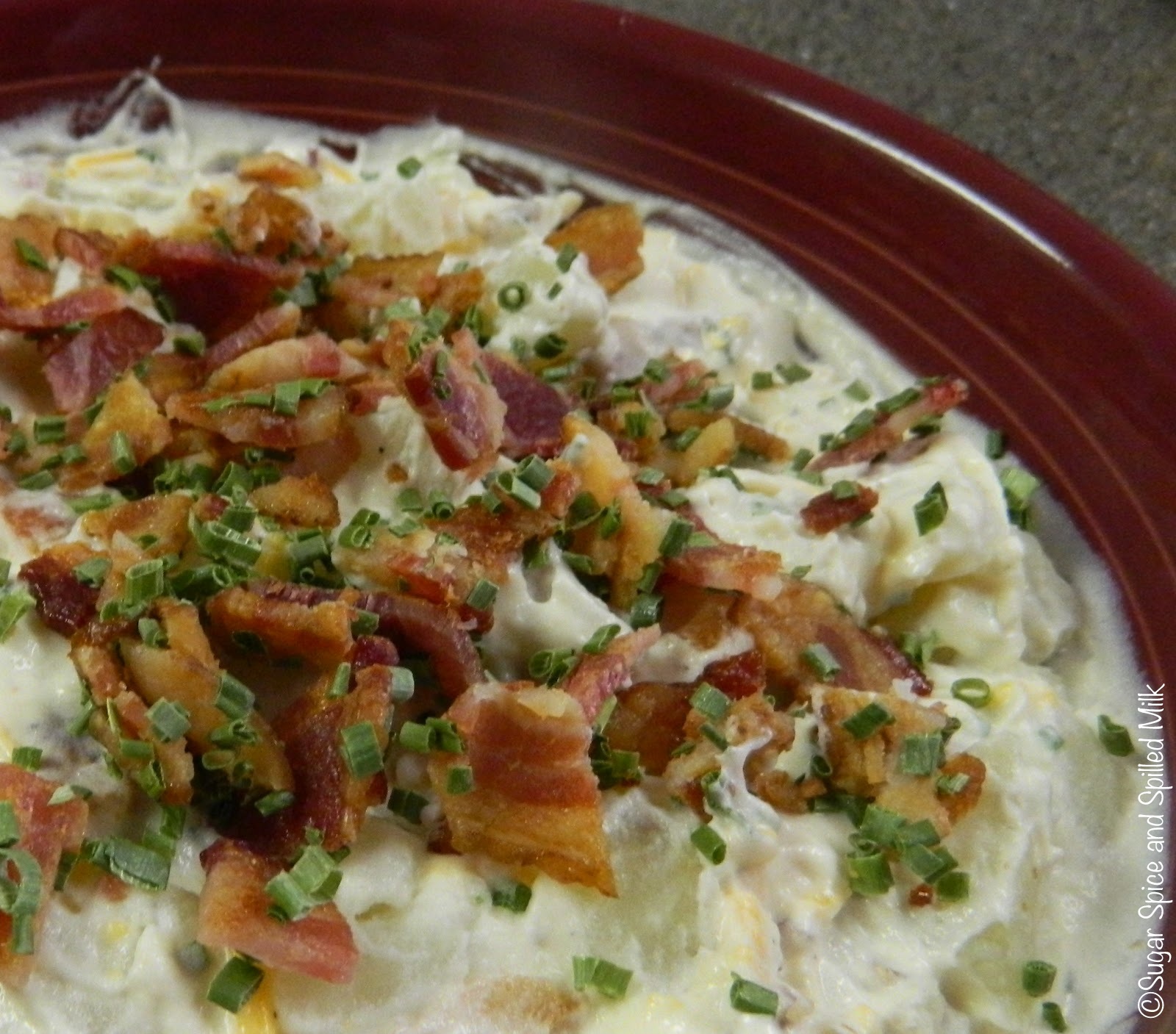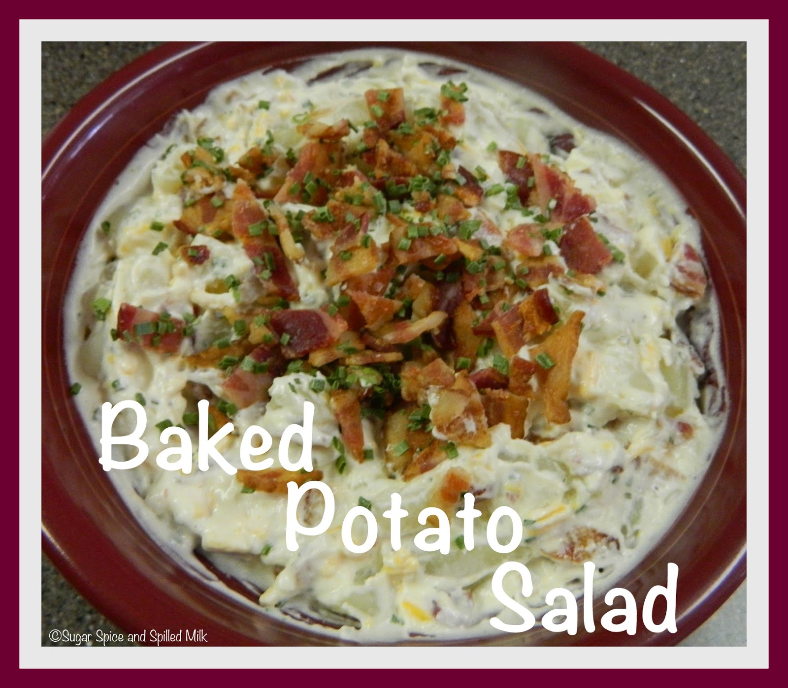 Baked Potato Salad is a great addition to a Memorial Day menu or for any gathering. This is a no-fuss potato salad, so easy to make. If you make up the dressing and cook the bacon ahead of time, all you have to do is cook the potatoes and throw it together before serving. My husband loved it, and we finished off the leftovers the next day.