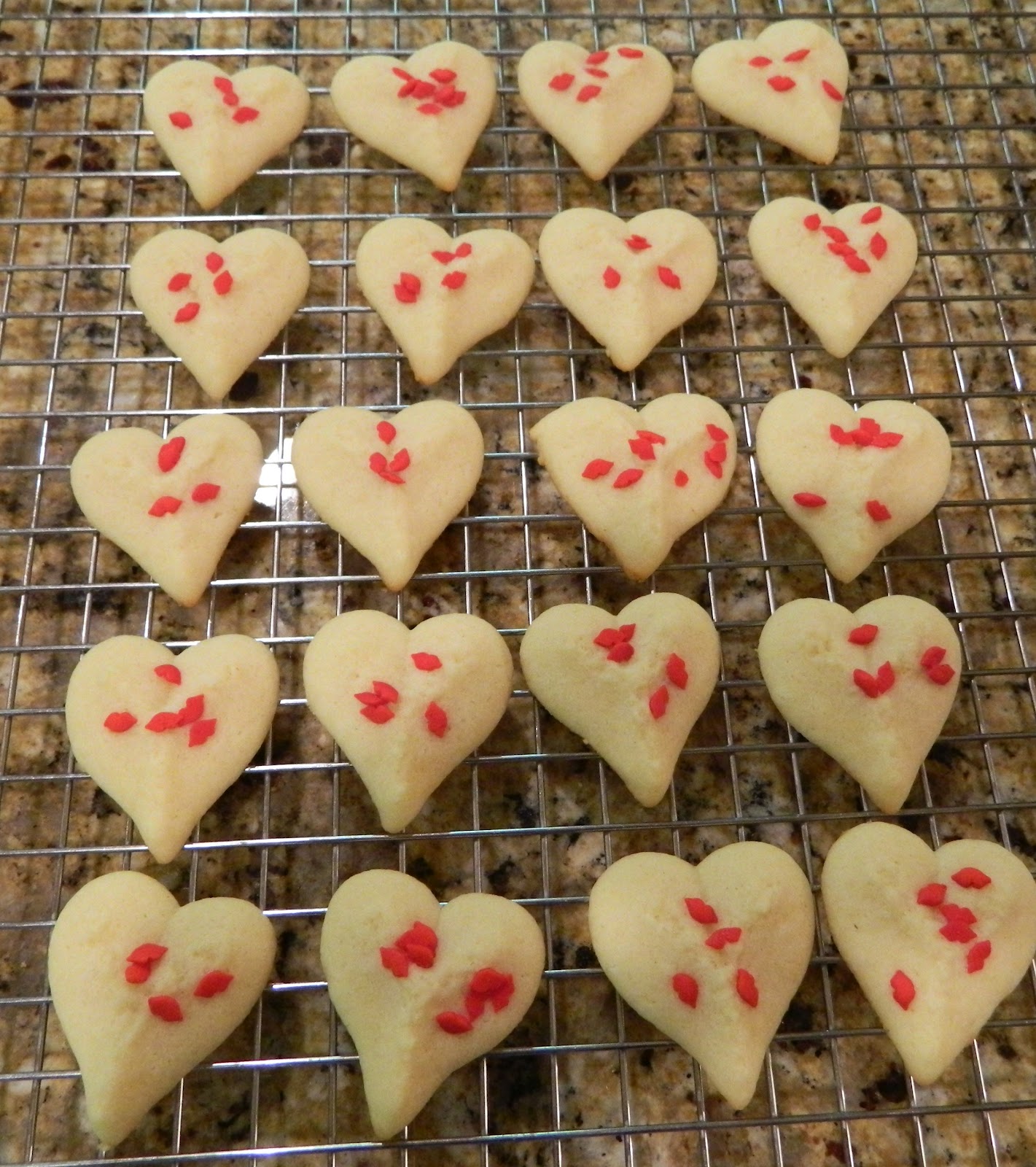 Today I baked some dainty little Butter Cookies for a couple of my sweethearts, Ginger and Charlie. I adapted my recipe from the Taste of Home Cookies cookbook. They are made with a cookie press, so they are quick to create. These Butter Cookies are good for different occasions in any shape, but I think the little hearts are sweet for Valentine’s Day.