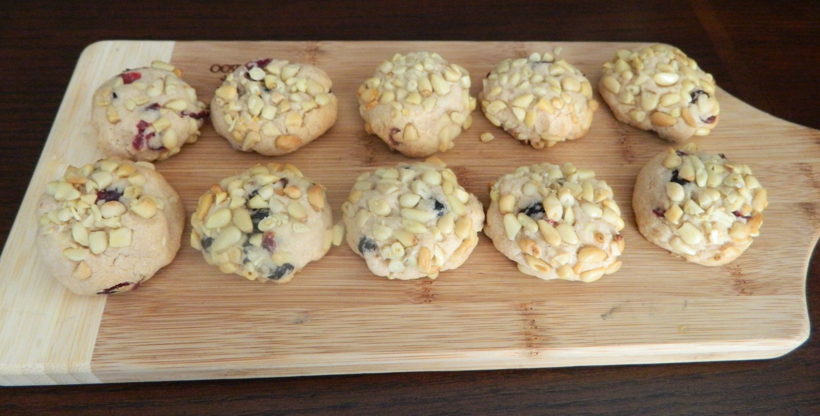 You’ll need dried cranberries, blueberries and pine nuts for these cookies.