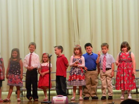 My grandson Landon graduated from kindergarten on Monday night. He goes to a small private school. There were only twenty-two students in two kindergarten classes. The students demonstrated some of what they had learned this year by reciting and singing at graduation.