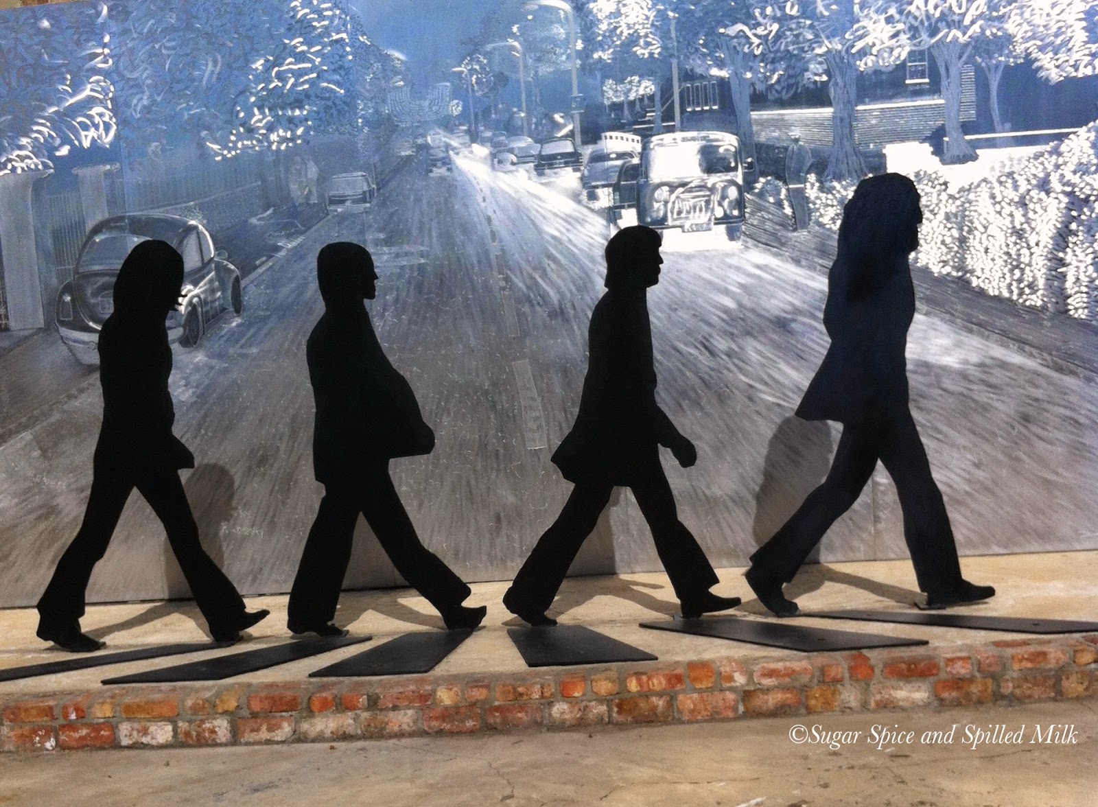 The restaurant is owned by locals Cara and Danny West. The restaurant is Cara’s enterprise, but the metal sculptures in the park were crafted by Danny. The sculptures are a life-size depiction of the Abbey Road album cover.