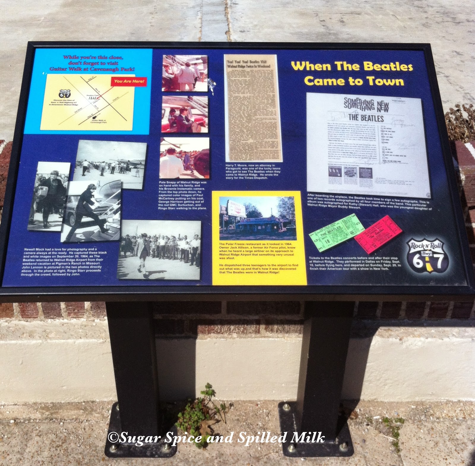 The history of the event is documented by markers at the park. Only about 200 – 300 lucky individuals were witness to the Beatles’ visit, but Walnut Ridge has never forgotten. The downtown street where the park is located has been renamed Abbey Road.