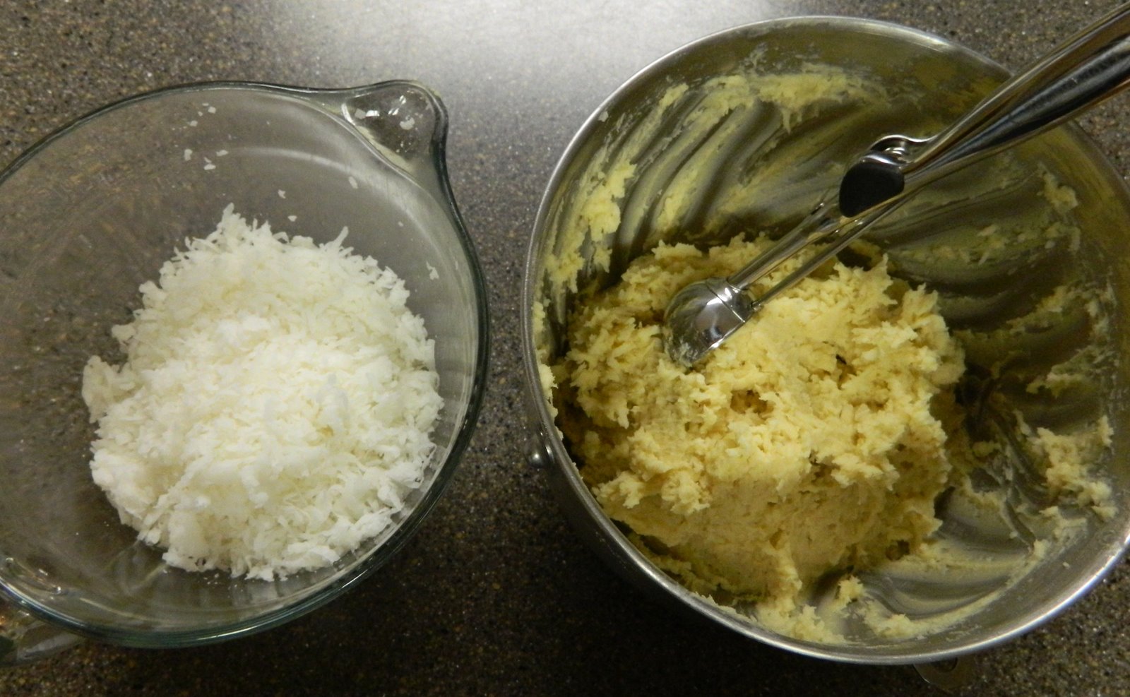 Use a cookie scoop to make the cookie balls to roll in coconut.