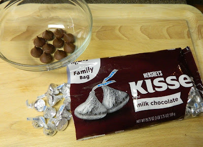 While the cookie dough chills, unwrap the Hershey’s kisses so they will be ready to pop on top of the cookies when they come out of the oven. The recipe indicated that it would make 48 cookies, but my batch had 50 cookies.