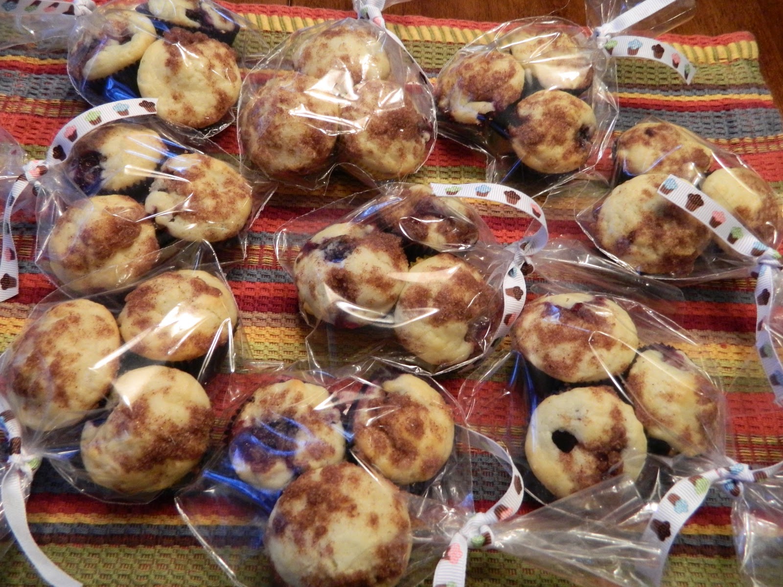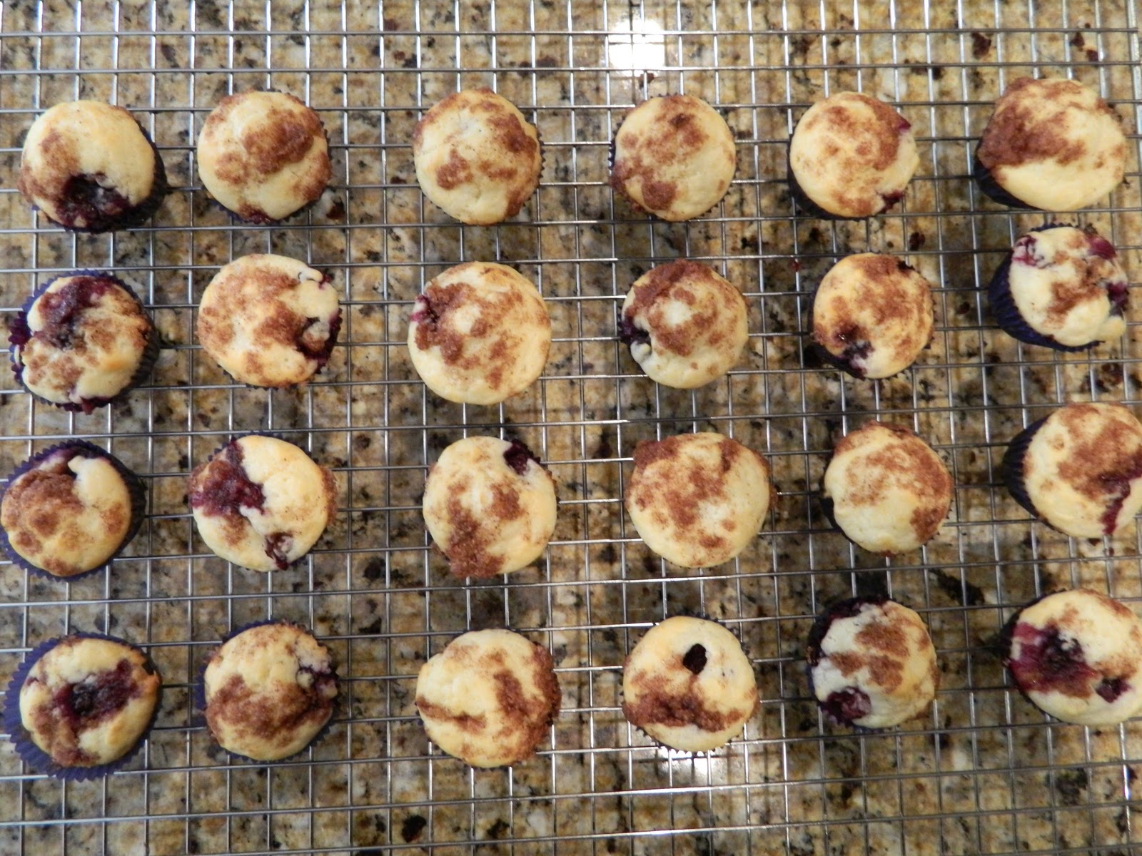 These tiny, tasty, Mini Blueberry Muffins were another one of the bake sale items that I made for the VA hospital in Little Rock this past week. I didn’t get pictures of everything that I baked, but I did snap some of these miniatures. The recipe for these muffins is found in the 500 Best Muffin Recipes cookbook by Esther Brody. Another muffin that I baked for the sale was Cream Cheese Cranberry Muffins.
